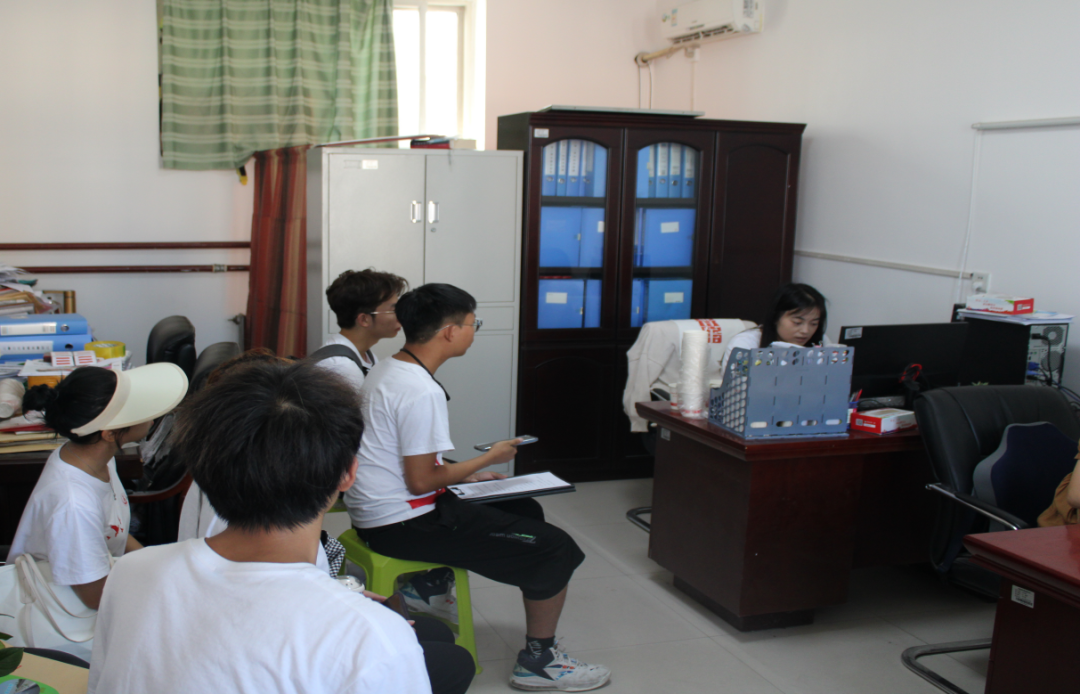 实践队成员在向米脂团县委副书记舟亚楠汇报行程及工作计划