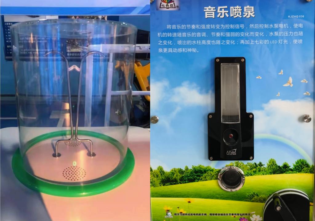 四楼的科技展室、趣味编程室、机器人室、创意展室和创意木工室,更是激起了实践队成员对科技和创新的热情。其中雅各布天梯更是引人注目,它是物理学中的一个重要实验,被广泛应用于教育和展示电场、等离子体和气体电离的基本概念,它的视觉效果令人印象深刻,在实践中激发了队员对于物理的兴趣和好奇心。同时,混沌摆中一个摆带动两个摆做不规则运动从而产生混沌效应,其不可预测的轨迹,也让队员再次惊叹于物理力学的神奇。
