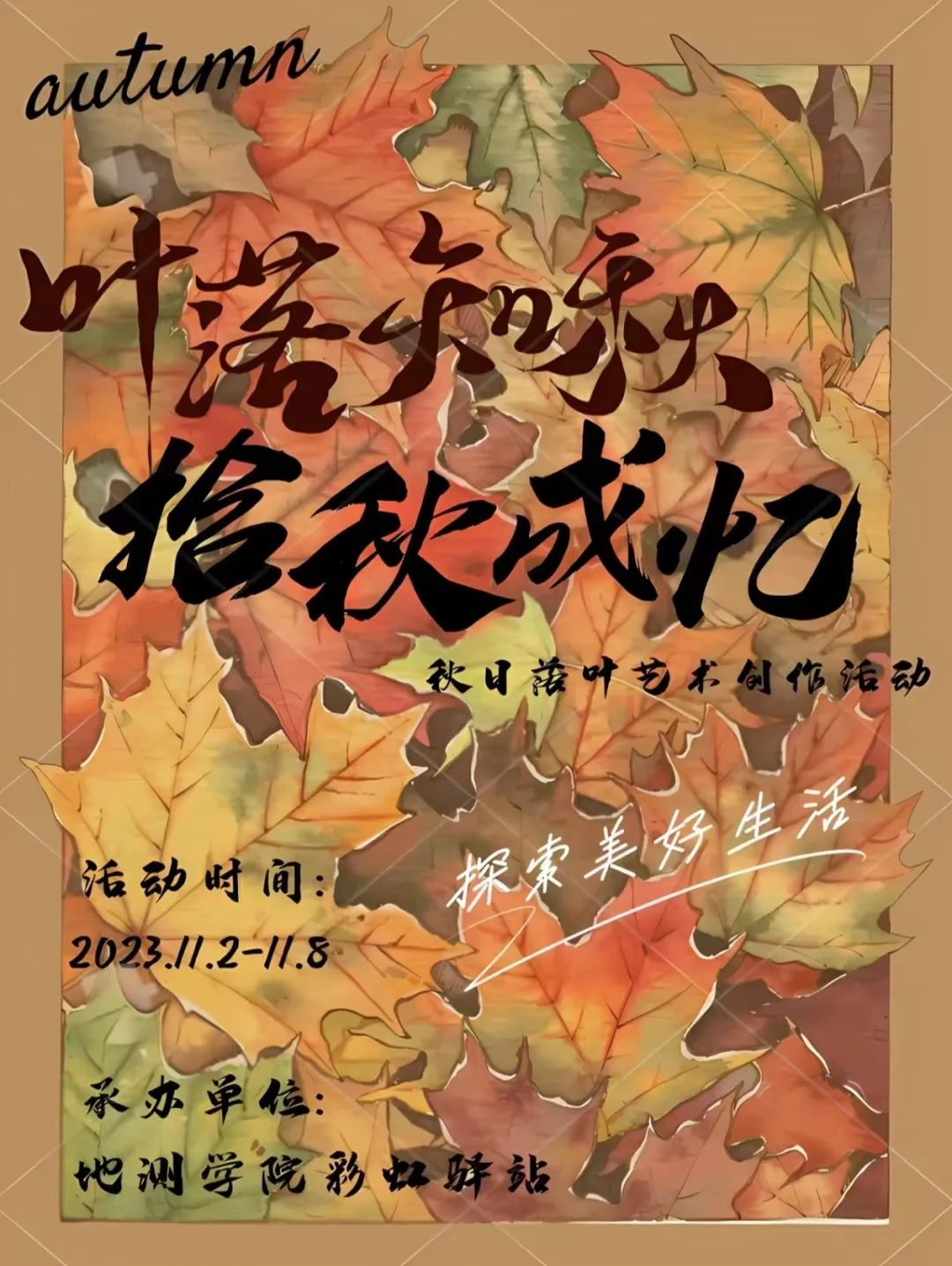 为了丰富同学们的课余生活,在发现秋天美景的同时提升同学们的动手能力。必赢76net线路官网彩虹心理协会面向全校学生于2023年11月2日至2023年11月8日期间成功举办了“拾秋成忆,落叶知秋”艺术创作活动。