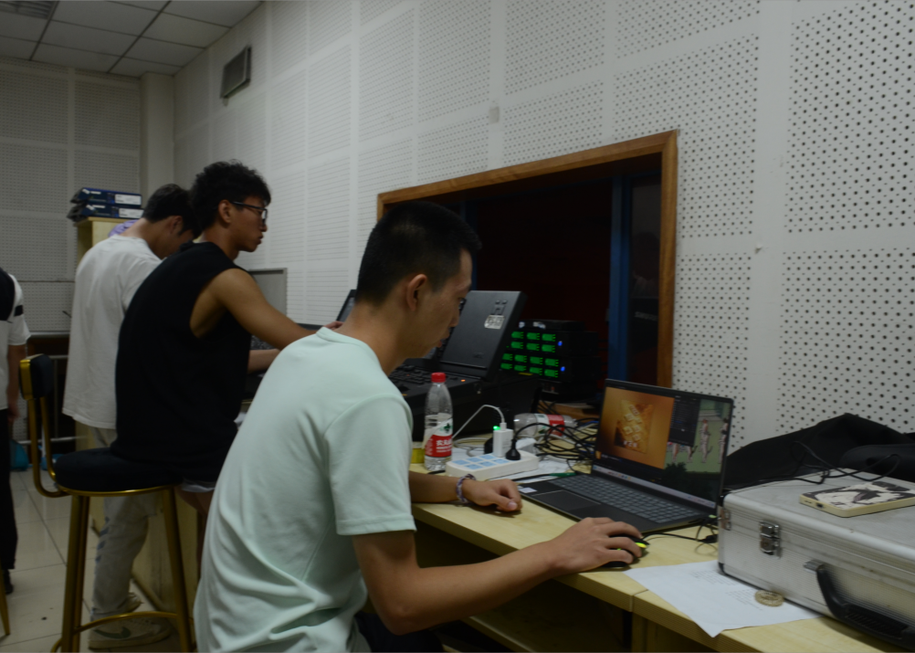 工作人员有条不紊地布置着舞台