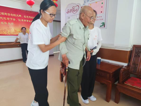 回望抗战历史,看到的是奋起发声,是早早穿上的军装,是宁死不屈的坚毅面孔,历史是最好的教科书,也是最好的清醒剂,为了更好地学习、传承和发扬抗战中老一辈革命者英勇不屈、顽强抗争、前赴后继、不畏牺牲的革命精神,8月2日必赢76net线路官网赴陕西延安“研学党的二十大·重温赓续延安情”暑期社会实践队前往“八一敬老院”拜访了敬老院的老人们,同时与革命战士同景飞老人进行了深入的交流。