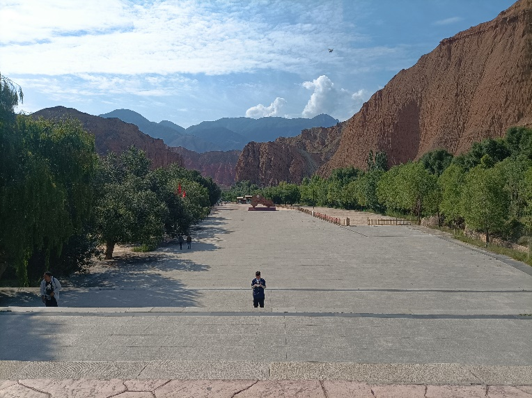 随后,实践队又参观了贵德黄河清湿地公园。该公园依托黄河森林公园和湿地而建,东起尕让乡阿什贡村,西至拉西瓦水电站,全长28000米,南至西久公路,北达原宁果公路,平均宽2100米,总面积8.32万亩。在独特的地理和自然环境作用下,形成了美丽壮观的溶蚀地貌和丹霞地貌。科考队李培月老师在考察中提到:“对于黄河上游生态资源不仅要进行保护,同时在生态承载量允许的情况下进行适度的开发,让人们能够真正地亲近自然,进而热爱自然,从而保护自然”。