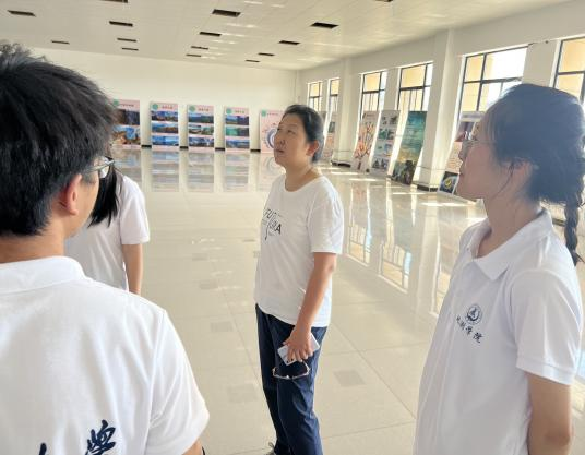 实践队展板演说小组前往北辰小学科技展馆熟悉现场情况,对展板的布局和整体观览流程作出适当调整。借助展览现场,每名展板讲解员都提前进行了模拟演说,从中发现一定问题并在指导老师李萍的帮助下及时改进。