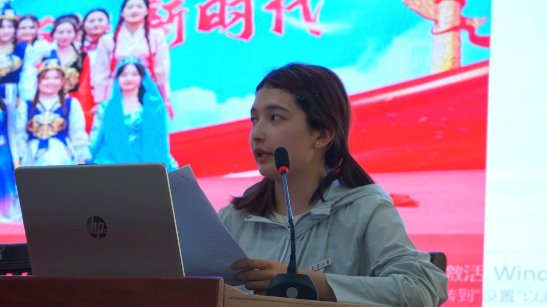 在奋斗事迹分享环节,实践队员们诚挚恳切的总结分享了学习方法和经验:梁瑞航以高中波折的学习经历为引,鼓励同学们要在跌倒后及时爬起来;侯晓庆以“勇气”、“坚持”为关键词,希望同学们具备良好的学习态度;来自新疆的维吾尔族学生帕丽扎提·亚生江分享了她美好的大学生活,希望各民族学生能像石榴籽一样紧紧抱在一起团结共进;同样来自新疆的队员王博分享了自己从一名体育特长生转变为文化生的励志奋斗历程,以此告诉同学们“当下”就是改变自己最好的时刻,努力在任何时候都不算晚。