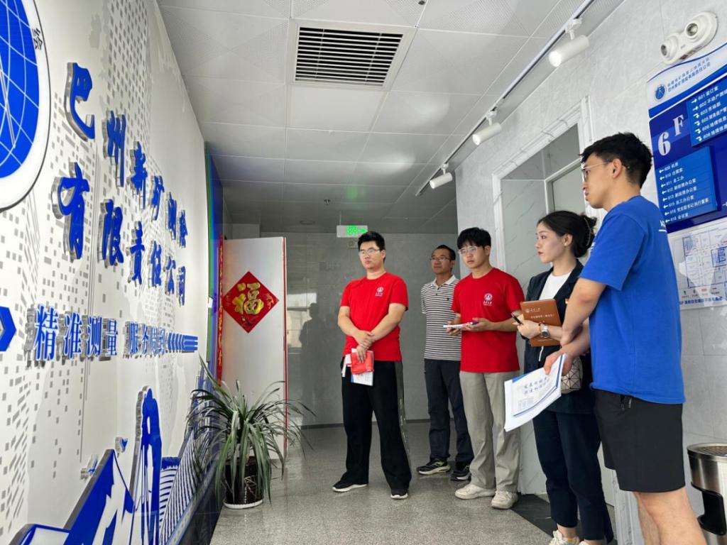 必赢76net线路官网2020届校友张超峰热情接待了实践队一行,带领实践队参观了新疆地矿局第三地质大队地质调查研究所、巴州新矿测绘有限责任公司的办公场所及主要科室。