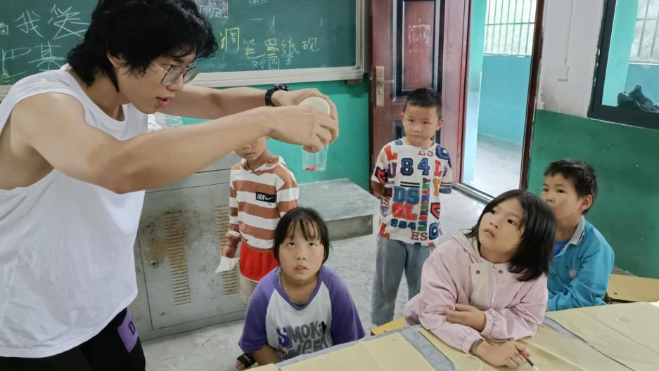 教学互动是支教过程中的重要组成部分。在教学过程中,实践队员与孩子们以平等互信的态度展开了亲密而有趣的对话和互动。课堂上,实践队员鼓励孩子们提问、表达观点,并给予积极的反馈和引导,注重培养孩子们的思维能力和批判性思维。通过互动的教学方式,孩子们不仅能够在参与中主动学习知识,还能在其中发展自信、扩展思维和培养创造力。