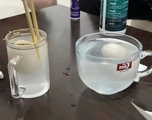实践队队员提前演练了实践内容“水的趣味实验”。在“会动的牙签”这一有关水的表面张力的实验中,队员们将牙签进行了不同程度的折断重复操作,以获得更好的展示效果;在进行“悬浮在水面的鸡蛋”这一有关水的密度的实验时,队员们遇到了困难——鸡蛋老是浮不起来。经过多次更换容器、调整盐水比例后,沉在水底的鸡蛋终于浮了起来!队员们发出了激动的欢呼!