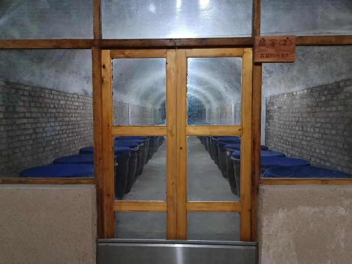酒味飘香,循着酒味实践队来到酒坊。袁家老窖内到处都是酒坛子,上面用一小块红纸写着“礼泉醇”、“十里香”和“女儿红”。酒窖在院内的二层小楼的地下室,灯光昏暗,几十大缸子的酒糟,在阴湿的底下默默地发酵,最后经过蒸馏而形成醇美的酒浆。