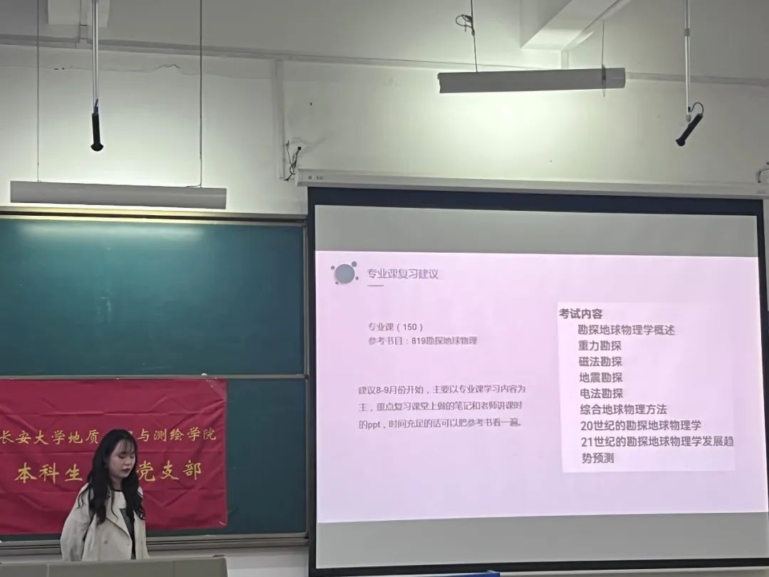 接下来,陈炫博同学以提前准备为主题,以自身经验为基础,从志愿选取,报考类型,以及调剂方法等方面给出了同学们建议,鼓励同学们早做准备,确定目标,在备考过程中,有的放矢。