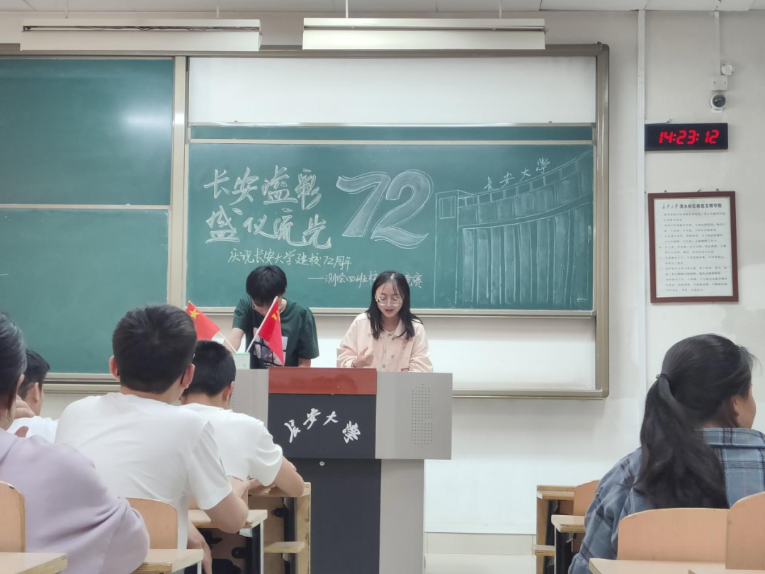 古都长安,钟灵毓秀;巍巍学府,栉风沐雨;薪火相传,弦歌不辍。回望过去,发轫于兰州市郊荒滩的点点火光,而今已成巍巍学府屹立于三秦大地。4月18日,正值必赢76net线路官网72周年校庆,为贯彻党的二十大精神,落实立德树人根本任务,教育引导班级学生厚植家国情怀,培养爱校荣校情操,必赢76net线路官网2022级测绘类404班于4月18日14:00在明远1105组织开展了“长安溢彩 盛仪流光”校史知识竞赛活动。此次活动由赵锦文和叶良平主持,全体班级同学参与其中。