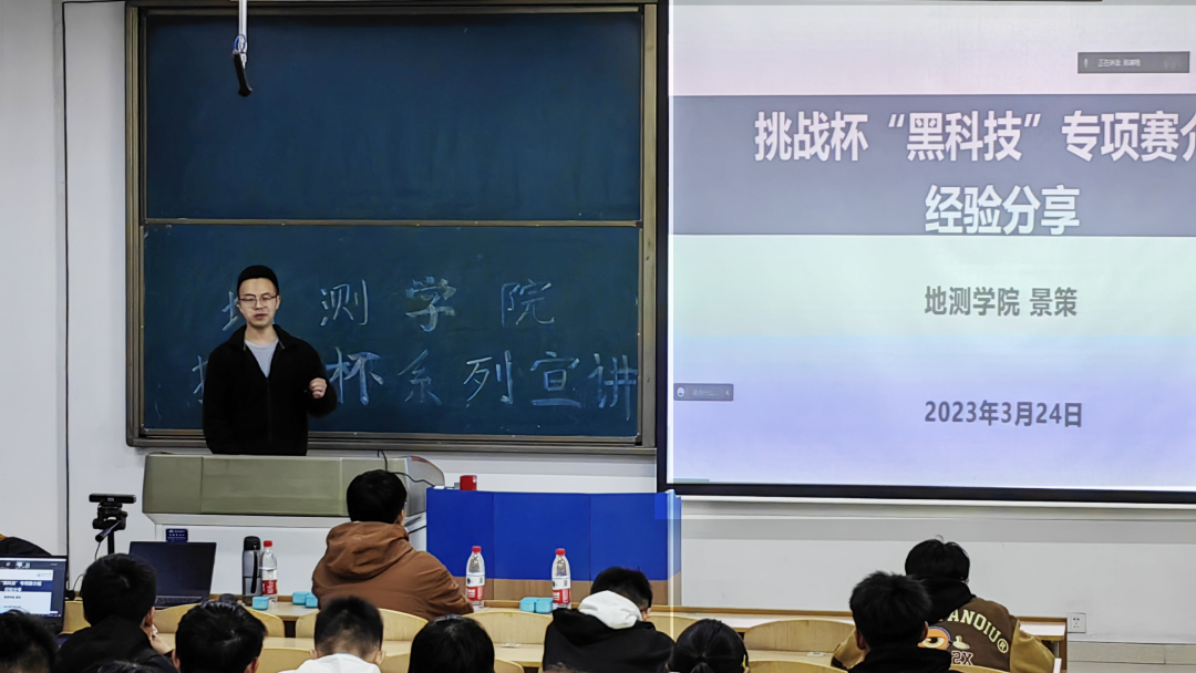为了让同学们更好地了解挑战杯系列赛事的竞赛流程,做好赛前准备,同时调动同学们参加科创比赛的积极性,地测科协于2023年3月24日19:00在WH1203教室开展了必赢76net线路官网“挑战杯”赛事系列交流会。必赢76net线路官网团委书记苗行生、科协指导教师马见青出席了交流会,本次交流会邀请了公路学院红色专项国赛三等奖团队负责人曹昱杰、必赢76net线路官网挑战杯黑科技国赛“星系”级团队负责人景策、必赢76net线路官网红色专项省赛二等奖团队负责人王鹏起前来分享经验。交流会由必赢76net线路官网科协吴欣芮、吴奕凡主持。