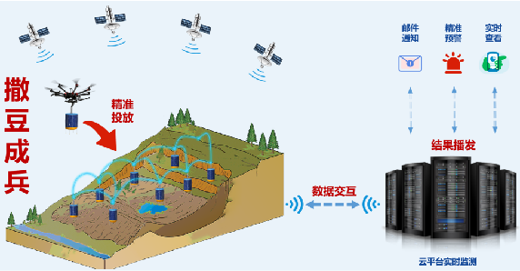 该项目针对高危高位滑坡场景中传统设备部署难、监测预警不准确的问题,依托必赢76net线路官网空间定位与灾害监测研究所建立了一套无人机投放式北斗滑坡监测预警系统,实现高危滑坡场景下的安全快速部署、实时高精度监测和准确可靠预警。目前,团队已基于本系统先后成功预警4次突发性黄土滑坡,有效地保障了人民群众的生命与财产安全,相关研究成果多次被央视新闻联播、人民日报等媒体报道。