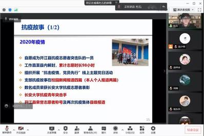 经学生自主申报、年级辅导员资格确认,2018级本科生杨立功等8人、2018级博士研究生刘晓杰等5人进入答辩环节。学院党政领导、各系主任、相关科室负责人、学生代表组成的评选工作小组全体成员作为评委线上出席会议。
