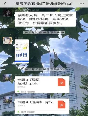 此次帮辅活动由各年级辅导员推荐成绩优异的同学为组长,主要围绕课程核心内容及重要例题进行讲解和答疑,并对组长讲的内容进行满意度调查。除此之外,由组长督促同学们每天将英语打卡记录上传至微信学习交流群,并由小组长完成汇总及记录工作,最后发给活动负责人留存。各民族同学纷纷表示在疫情期间会克服懒惰,坚持学习,团结一心,攻克疫情。2022,一起向未来。