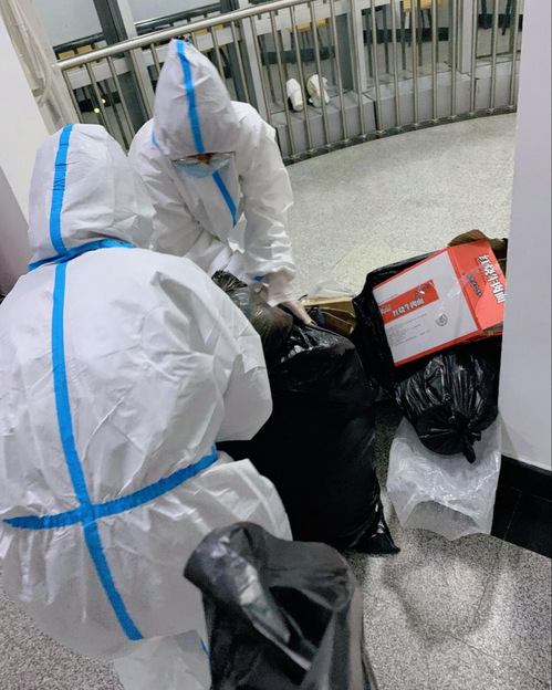 郭佳悦(处理垃圾):这是我开学以来起得最早的一次了。早上六点,天色还没亮,闹钟准时响起,心中便有一个伟大的使命在呼喊我必须起床。当我笨拙地把防护服往身穿的时候,才慢慢明白替我们负重前行的人是有多么幸苦。有那么一句话,深深地触动了我:“穿上防护服,我们便不再是孩子”。当我们成为他们的时候,才感受到了那份责任、那份坚守。不过短短两个小时,防护服带来的闷热感更是让我深深理解了这是一份怎样的责任,看着泛黄的胶皮手套和防护服里面满身是汗的衣服,我们深深感受到了奋战在抗疫一线的工作人员是多么的辛苦。真的很感谢志愿者和工作人员们,感谢永远将我们护在身后的抗疫工作者们,向他们致敬。穿最帅的衣服,做最可爱的人!这次志愿者工作带给我的不仅仅是感动,更多的是赋予肩上的责任。没有什么岁月静好,只是有人在替你负重前行!