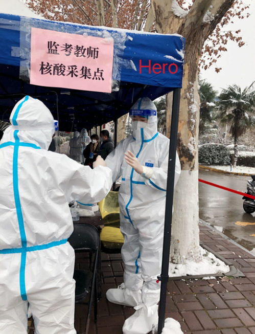 自12月14日起,学校每天都在进行核酸检测,同学们井然有序,不慌张,听从学校指挥,依次前往指定地点。相关负责老师与医护人员细致排查了每项核酸结果,每天工作至深夜。我们班也积极响应学校防疫制度,在寝室进行制动学习。当然,也有很多同学义不容辞地付出时间、精力,充当志愿者,成为了抗疫战场的“逆行者”。无论是在寝室还是在当志愿者,这都是在为战“疫”做贡献。